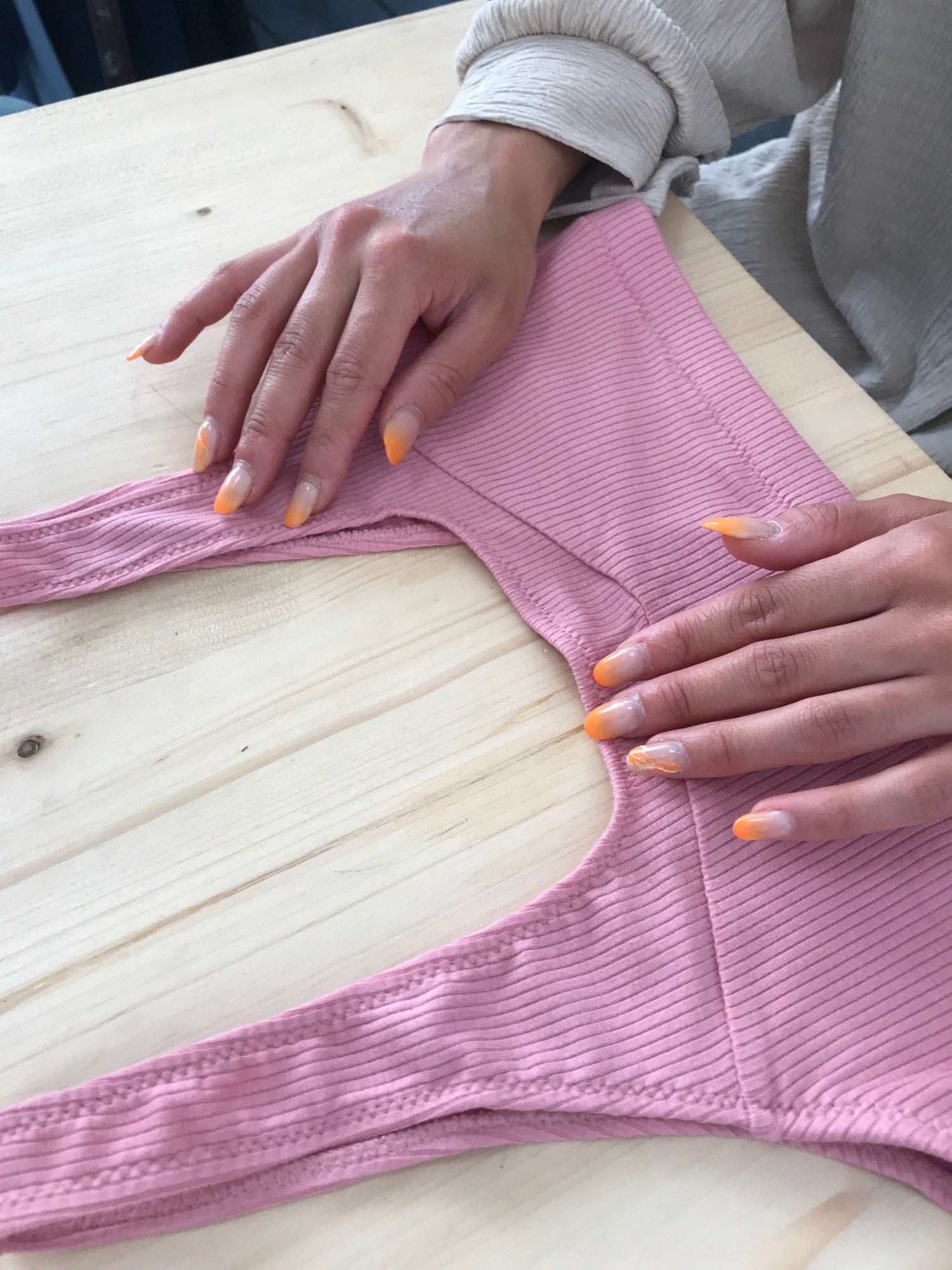 Nous travaillons avec un atelier de confection de lingerie établit dans la Loire. Ainsi, notre production est locale, avec un impact minimal des déplacements et un bilan carbone optimisé. Nous sommes en contact direct et régulier avec notre cheffe d’atelier Amal.